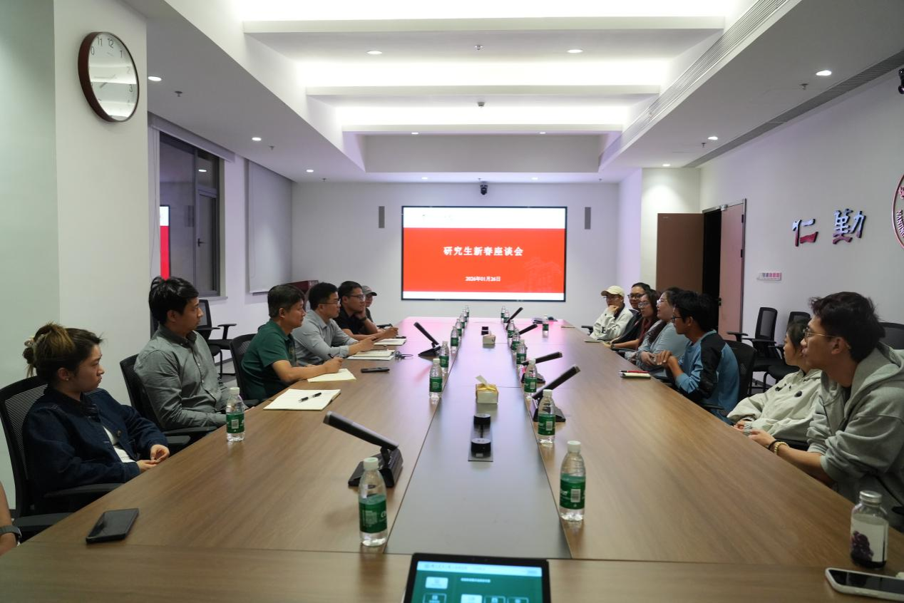 2026年1月26日下午,三亚研究院组织召开研究生新春座谈会。研究院党委副书记姜爱良、综合办公室主任蒋大华、学工办副主任赵广欣、辅导员毛杨毅与研究生代表围坐交流,共话学习科研与生活发展。