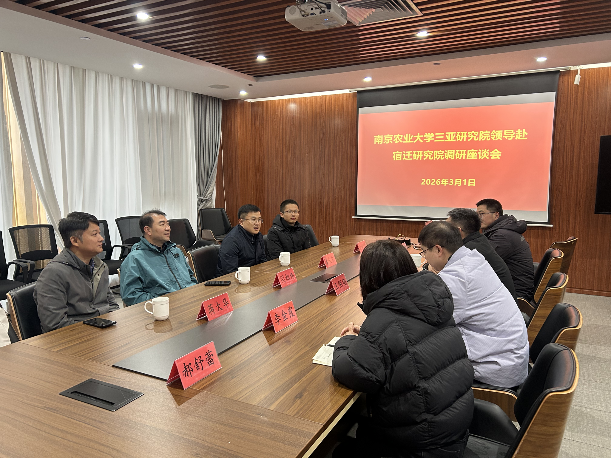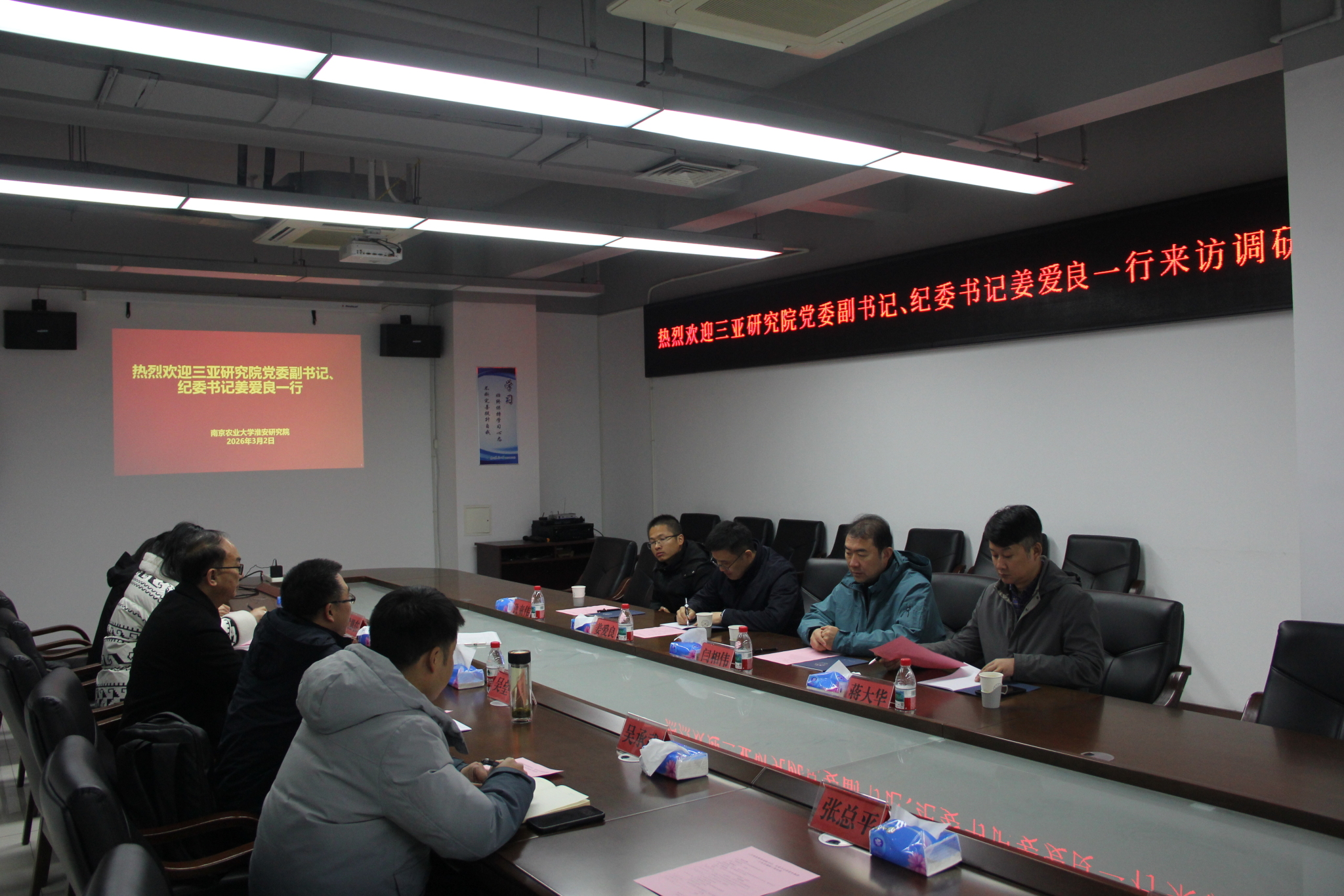 调研期间,姜爱良、闫相伟对宿迁研究院、淮安研究院在服务地方农业产业发展、深化校地融合、推动科技成果转化等方面取得的显著成效给予高度评价。他们表示,宿迁、淮安两家地方研究院立足区域资源禀赋与产业需求,形成了特色鲜明、务实高效的建设运营模式,为三亚研究院提供了宝贵经验。他们指出,三亚研究院与宿迁研究院、淮安研究院同根同源、优势互补,希望以此次调研为契机,进一步强化党建共建、科研协同、人才联合培养与成果互促转化,搭建常态化交流合作平台。